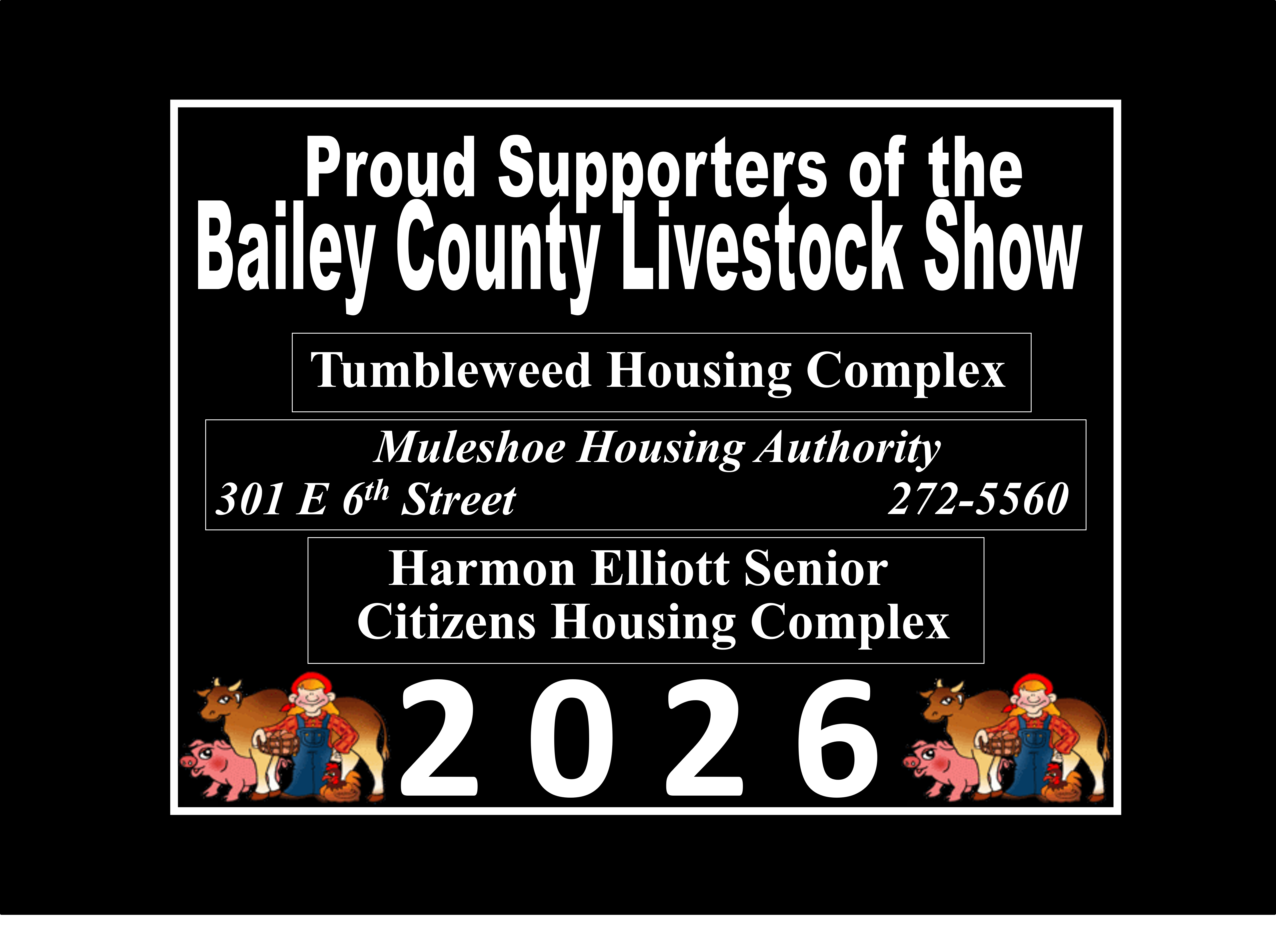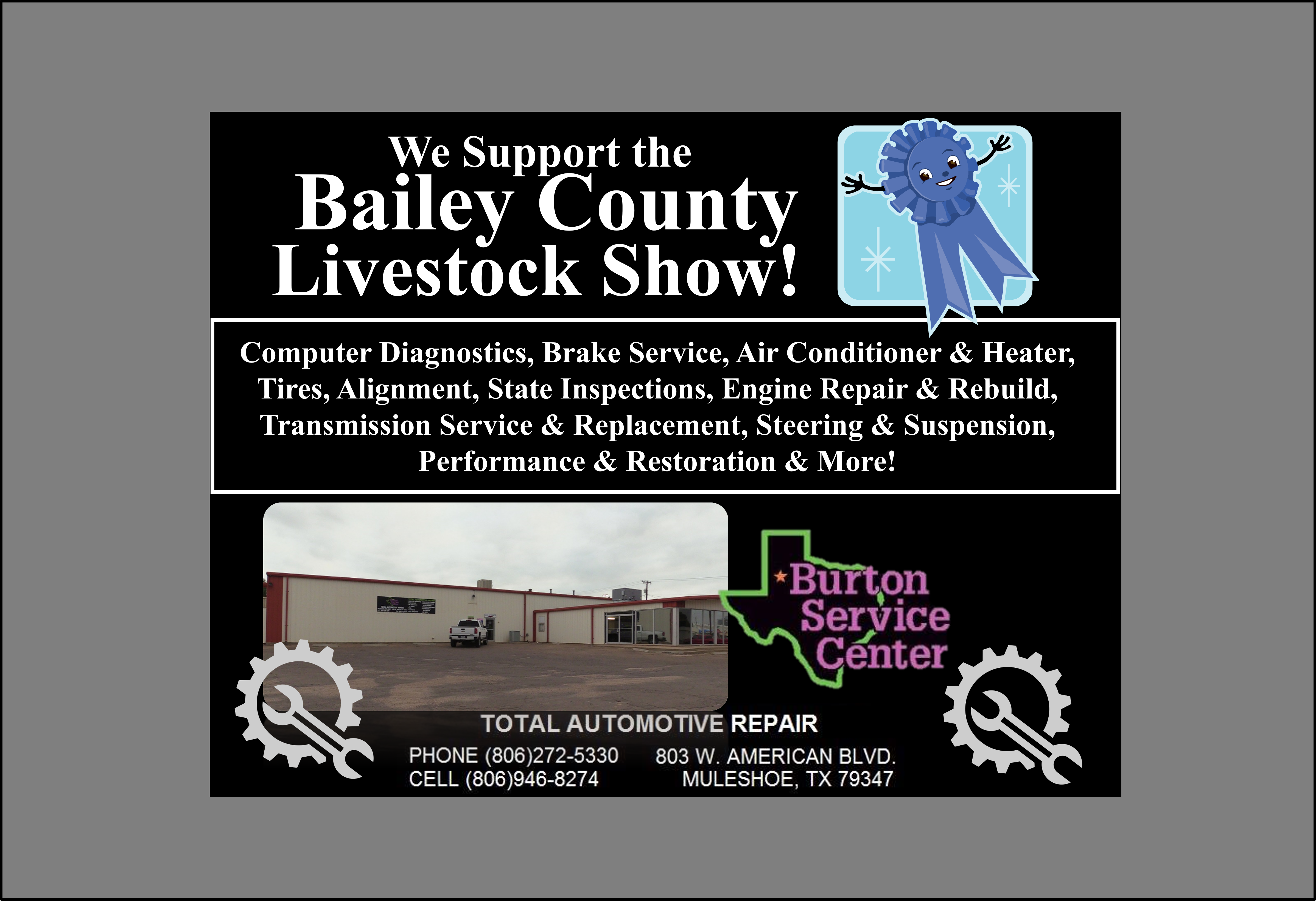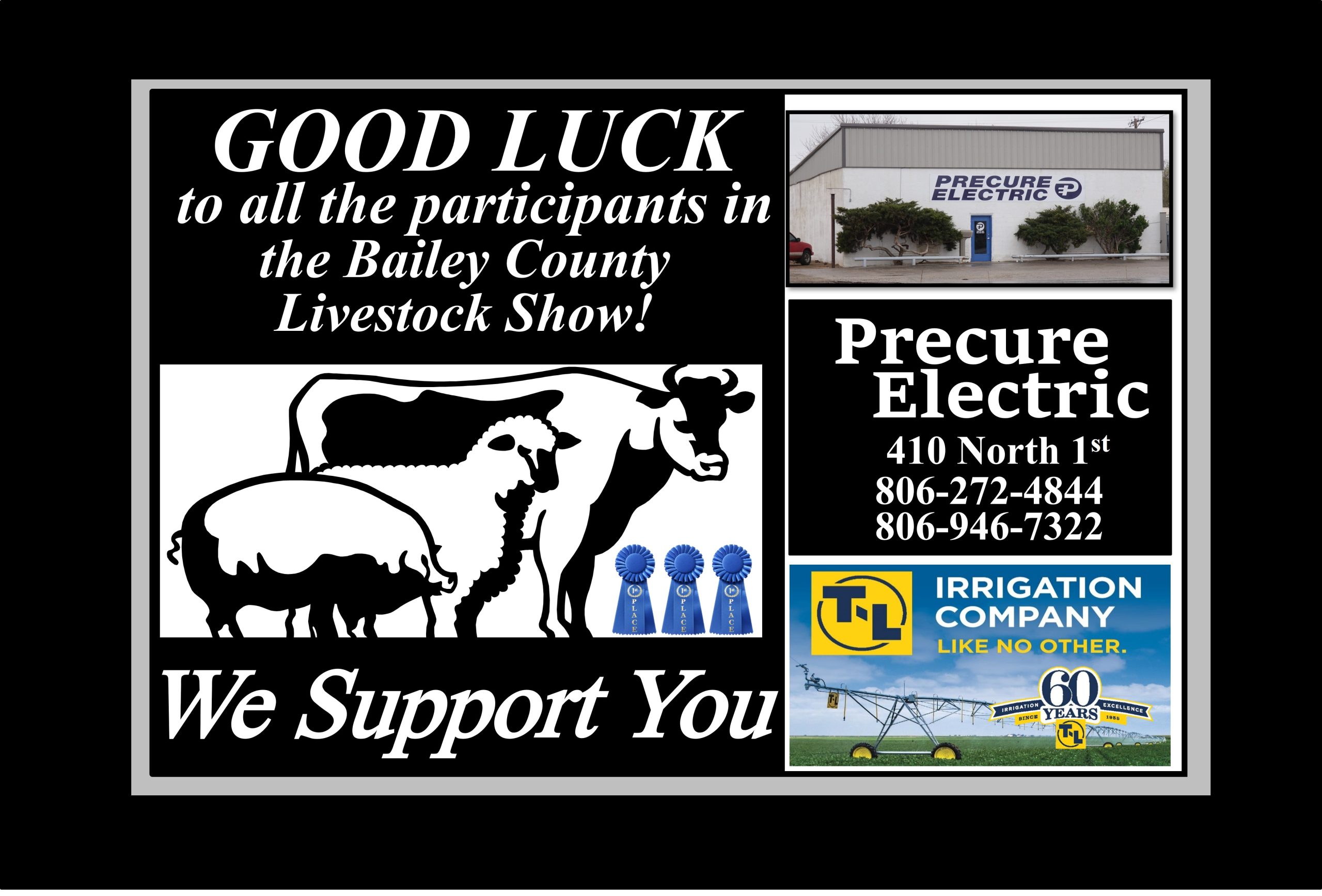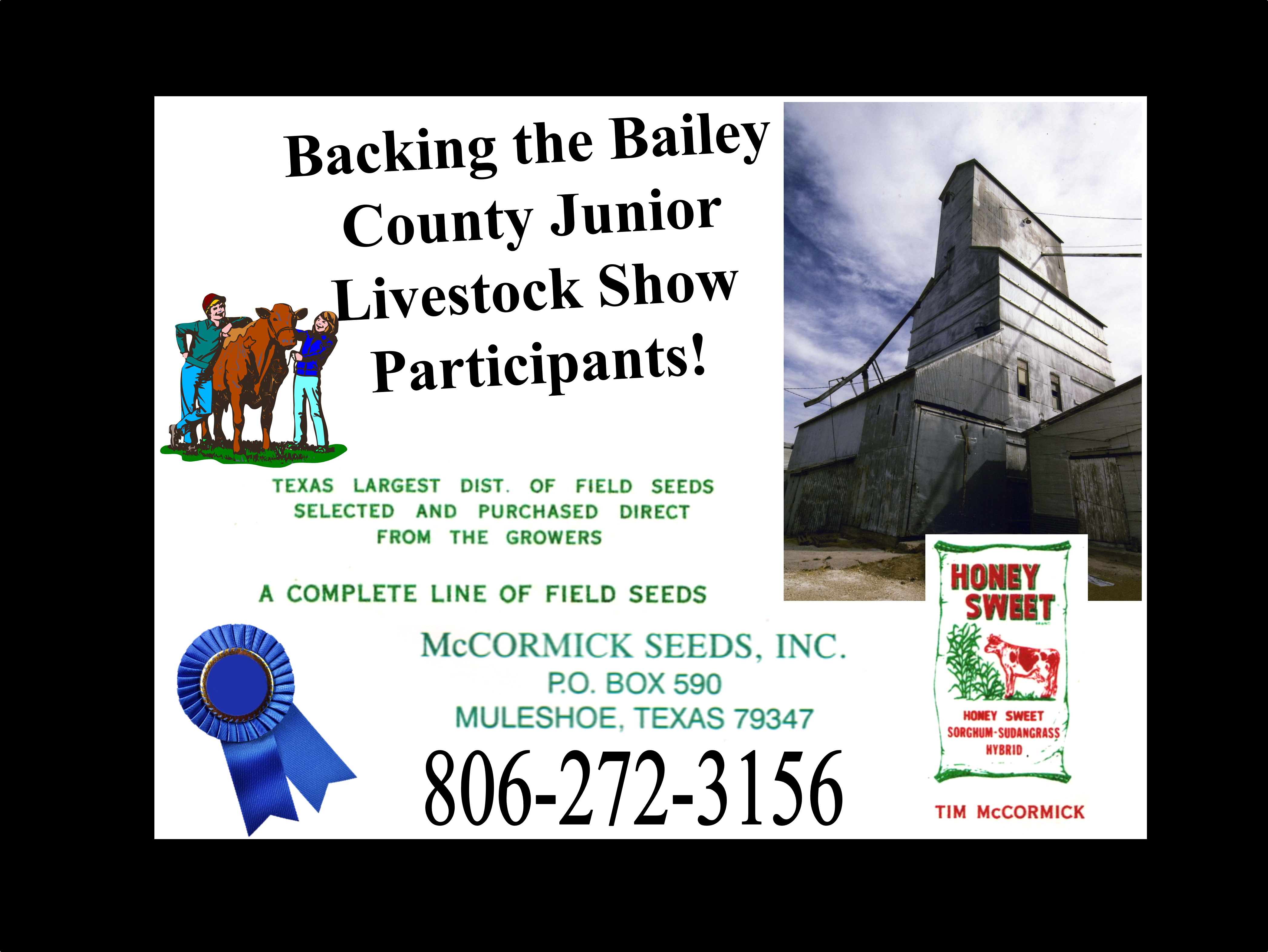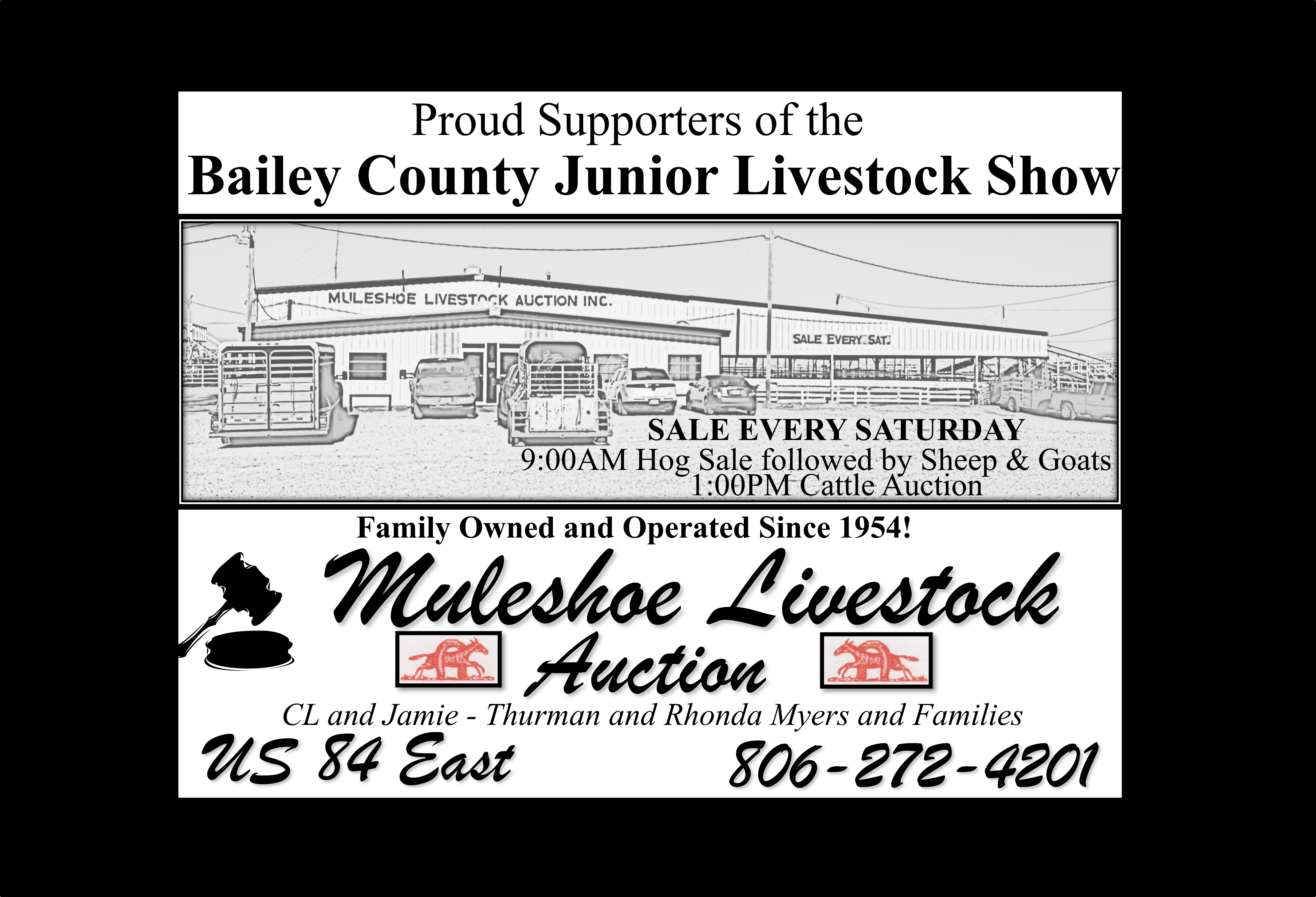 See the Livestream of the 2026 Bailey County Junior Livestock Show beginning at 7:50a.m. on Friday, January 23rd, from the Bailey County Coliseum in Muleshoe, Texas. Gil Lamb Advertising coverage of the livestock show is brought to you by Barrett Potato Farms, Bailey County Electric, Burton Service Center, Dale Oil Company, Irrigation Pumps and Power, Hi-Tek Automotive, McCormick Seeds, Muleshoe Animal Clinic/Vet Supply, Mohawk Auto Parts, Muleshoe Housing Authority, Precure Electric, Shipman’s Body Shop/Autoplex, Muleshoe Area Medical Center, Muleshoe Livestock Auction, Muleshoe ISD, Five Area Telephone/West Plains Telecom, McDonald’s Restaurant, TG Fuels, Leal’s Tortilla Factory, Bamert Seed, Muleshoe Feed Barn and Randall Field CPA.